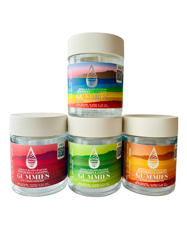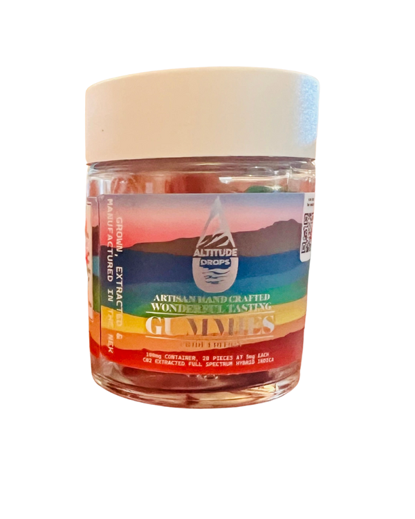 Our gummies are made with pesticide-free hybrid full spectrum THC extract. Altitude Drops gummies allow you to enjoy your love of gummies and THC while adhering to a gluten free lifestyle. Gummies can be consumed anytime during the day and may take up to several hours to feel the full effect of the cannabis. Please dose responsibly.